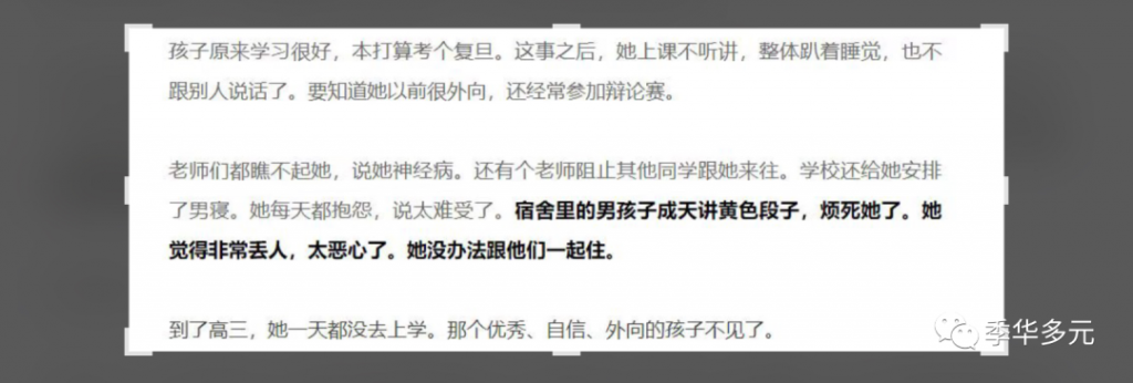 (注:由于不接纳跨性别身份,孩子成绩一落千丈,精神不佳)