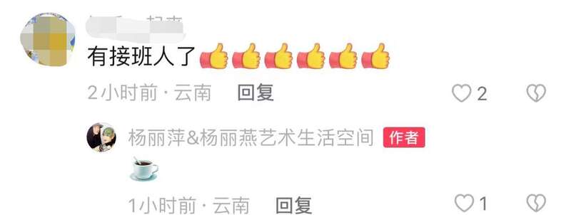 评论区,不少网友都在询问侄女是不是就是杨丽萍亲自选定的接班人。对此,杨丽萍并没有反驳,而是恢复了一个惬意的喝咖啡的表情,似乎是默认了。