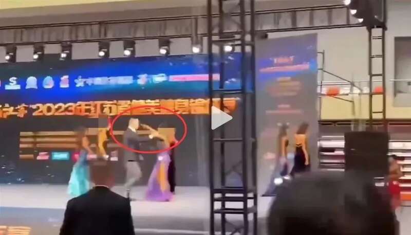 网传视频中,在2023年江苏省健美健身锦标赛女子健身模特全场冠军总决赛上,6名女性选手正在展示形体时,最左侧那名紫衣选手突然脱下高跟鞋,扔向台下的裁判席,后被工作人员带离现场。