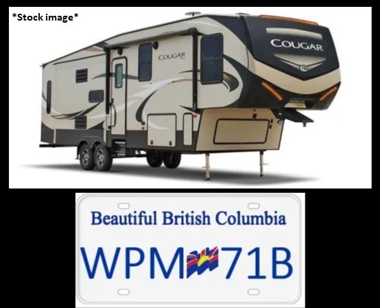 第二辆拖车是 6 月 30 日在奇利瓦克看到的大型第五轮拖车,是一辆棕色 2018 Cougar 拖车,型号 368,带有 B.C.车牌 ​​WPM71B。
