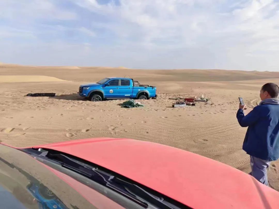 中国新闻周刊了解到,救援人员发现贾宁的皮卡车时,车辆已经陷在了沙子里。车上没有铁锹等救援工具,没有足够的饮用水,车轮下方也被挖了几个坑。他们分析,车上几人在无法联系外界、没有工具的情况下,只能冒着高温徒手刨沙,但车身并没有因此挪动。