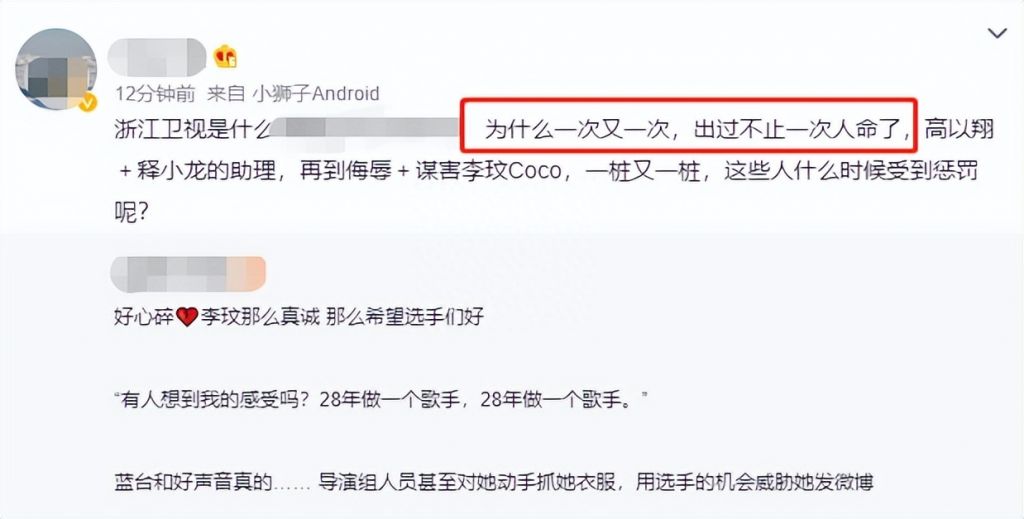 不少网友听完9分钟录音,第一时间都对浙江卫视产生了愤怒情绪,纷纷发文喊话,有人怒骂浙江台有人唏嘘李玟经历。
