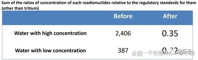 那些未代表的废水包括早期处理的,以及有段时间遇到过滤系统故障的,那些放射性元素含量高很多(分别为10-100与100以上)。但它们都会再次经过ALPS,即再次移除放射性物质。根据东电监测报告,之前放射性元素量含量2400以上的的水,再度处理后只有0.35。也就是说这种反复用ALPS处理来达标是可行的。