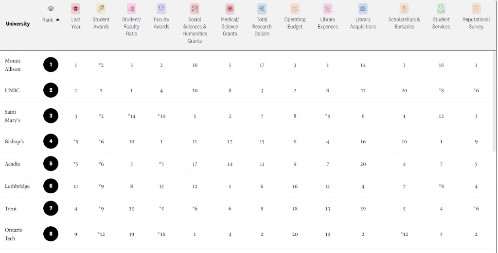 2024《加拿大最佳本科大學》排名:蒙特艾利森大學排第一