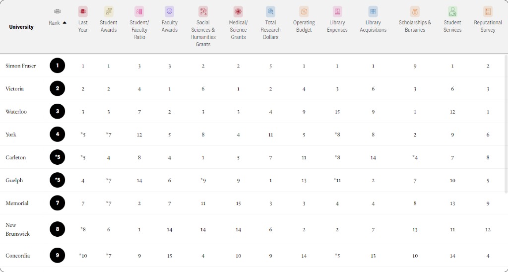 和2023年的排名一樣,SFU在最佳整體運營預算、學生服務、可用學生獎項和圖書館資源等類別中名列第一。