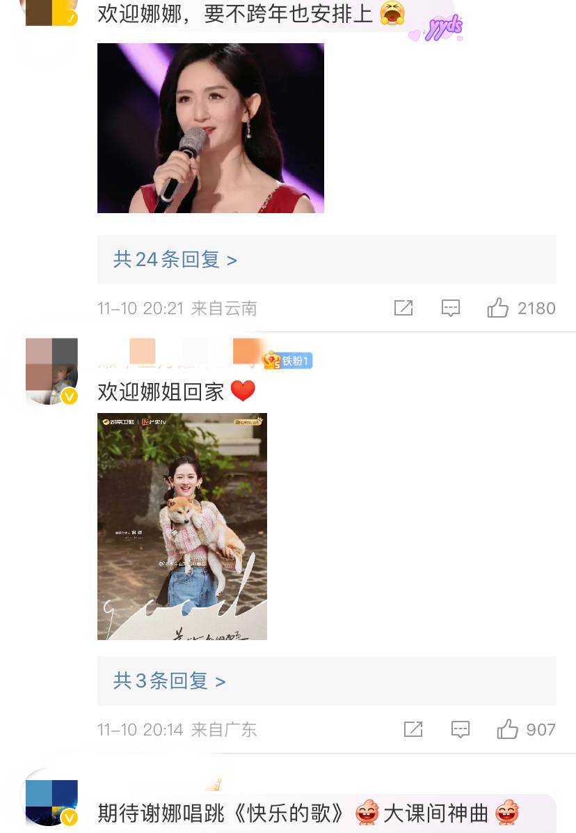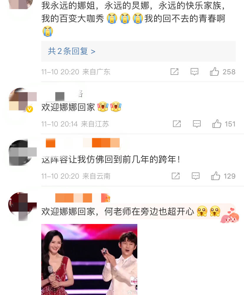 见到谢娜重新主持湖南台大型晚会主持,网友也纷纷送去祝福,一句句“欢迎娜姐回家”让人泪目。