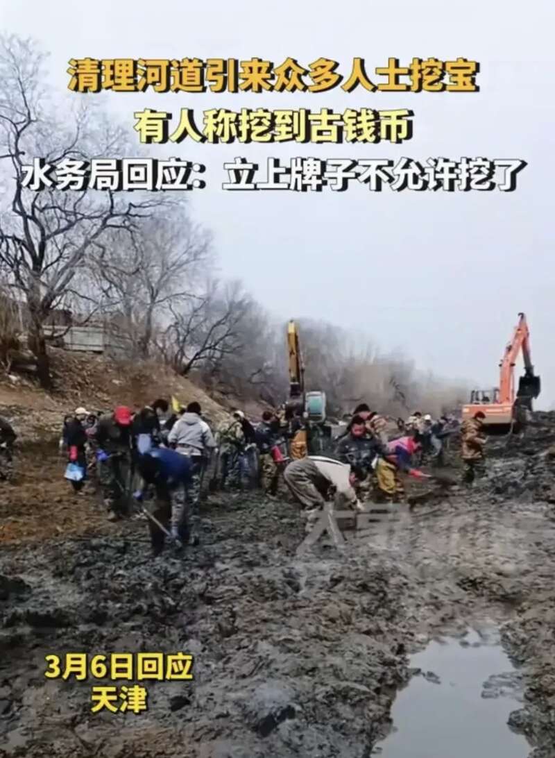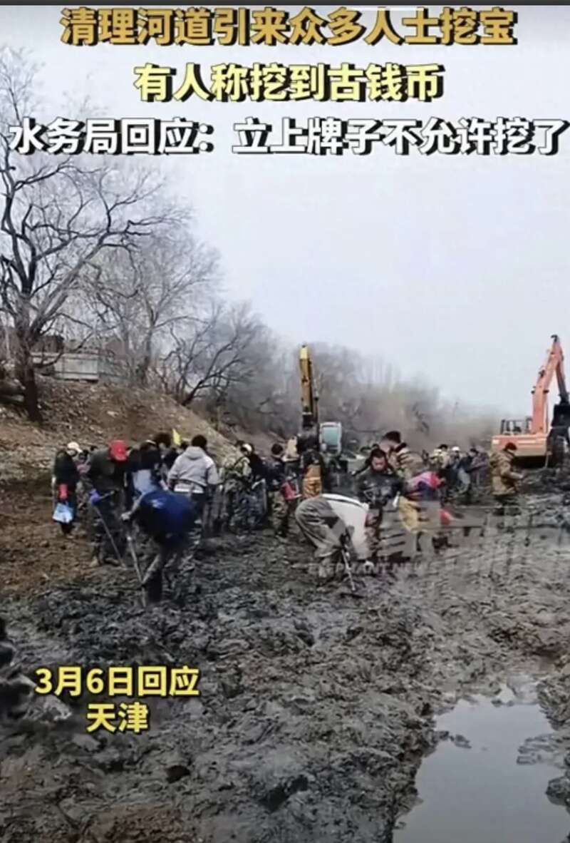 天津武清区那边,就在北运河老米店村的河道里,有网友自曝挖出了宝贝——古钱币!这消息一传十,十传百,大家都激动得不得了,觉得有了一夜暴富的机会,于是,快速朝着那里奔去。