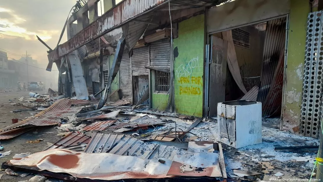 所罗门群岛2021年发生反政府暴动,中国城被严重破坏。(资料照)图像来源: Piringi Charley/AP/picture alliance