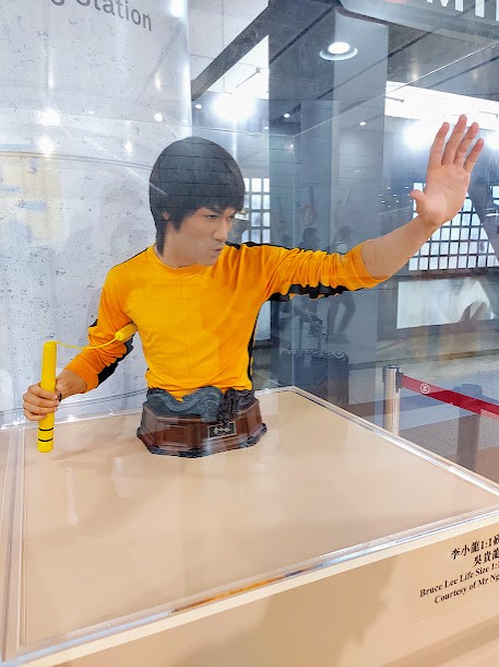 这座雕像位於香港站,是为纪念李小龙诞生85周年而举办的「无形之道:李小龙诞生85周年纪念展」的互动体验区展品之一。