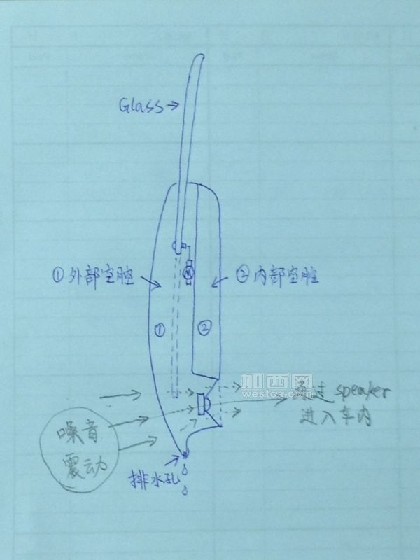 然而,有2个致命的问题,其一,噪音通过喇叭传入车内,同时干扰正常的声音播放,导致高速行车时音乐很嘈杂。其二,开关门时的瞬间气压差会都作用在喇叭上,无疑会损坏名贵的喇叭,高速时车内外的气压差也都会作用在喇叭上,使喇叭不能在初始位置播放音乐。
