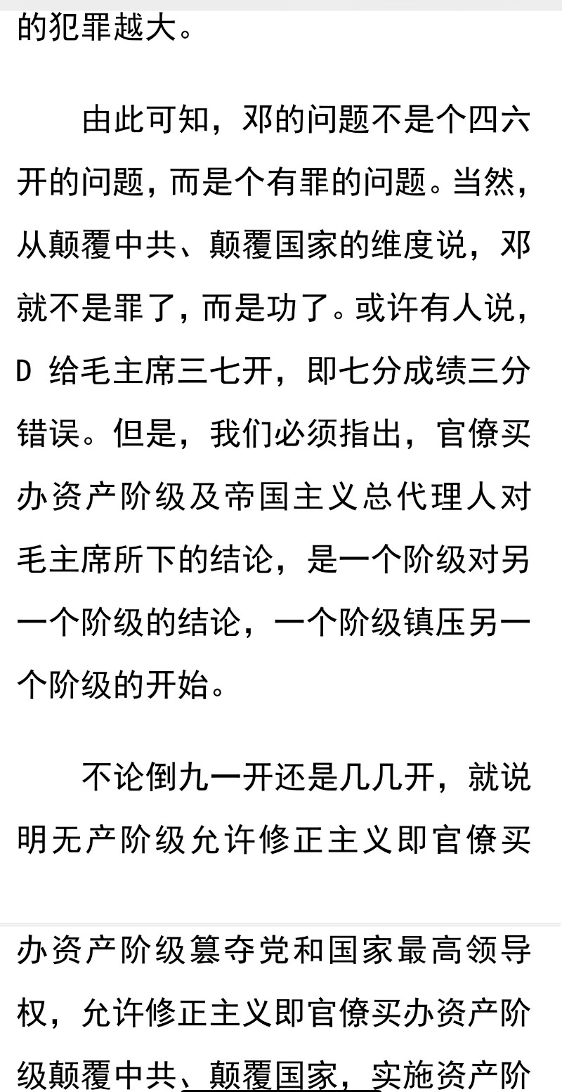 这就是为何说:作者视频中的说法,恰恰客观性逻辑性透视出了,当年邓党胡乱邦叛徒伪共集团,实质上无异于其政治思想意识上已经被时任蒋经国为首的国民党极右反动派所“招安”,而政治性代表了当年海峡对岸蒋统国民党之反共反毛反社的政治立场;也就必然要站在无产阶级专政下老百姓的对立面,来盲目性全盘否定那场“文革”民主政治运动了!