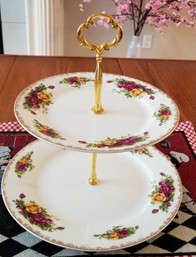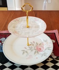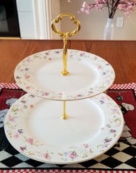 全新骨瓷二层蛋糕架35元一个,底盘直径27CM。轻薄优质骨瓷。