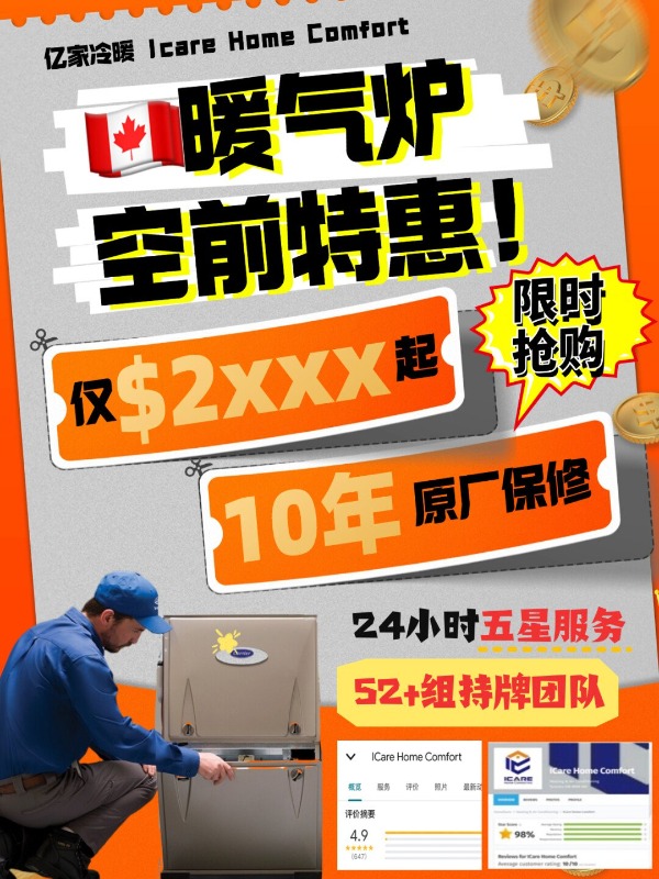 2025年Enbridge能源补贴强势回归,补贴高达$10000,覆盖项目有暖炉热泵,保温棉,热水器,门窗等,并有亿家额外赠送大礼包,名额有限,详情请联系亿家冷暖/icare home comfort