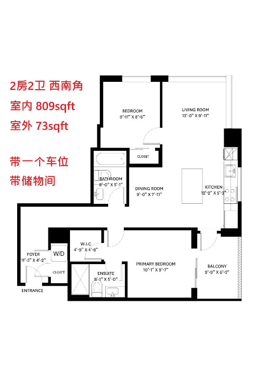 2房2卫809尺,嵌入式厨具,详细看户型图。