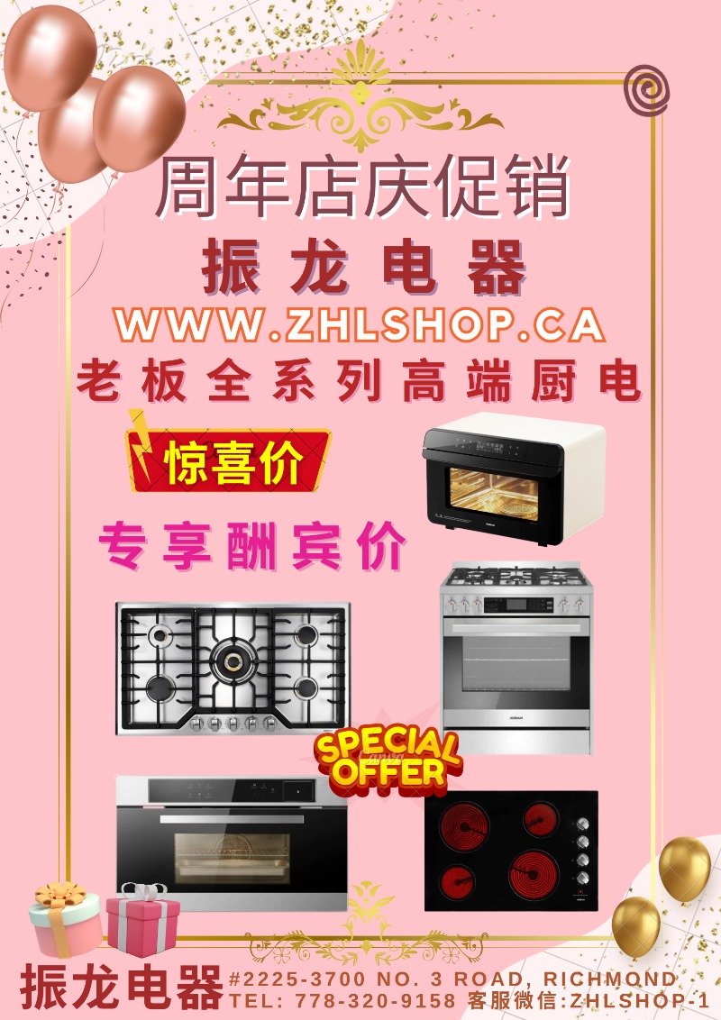 大吸力静音抽油烟机(老板品牌侧吸式、蒸汽洗、自动清洗等),震撼价最高直减$200