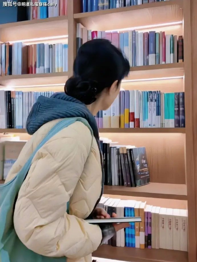 近年来,秋冬叠搭风潮盛行,周涛出现在图书馆,她身穿一件卡其色棉服外套,内搭一件深灰色连帽针织衫气质优越!