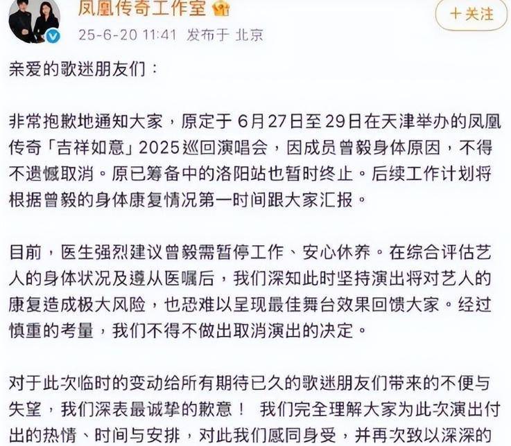 六月,工作室以曾毅需要休养为由,暂停了所有演唱会计划。此后数月,两人再无公开合体。