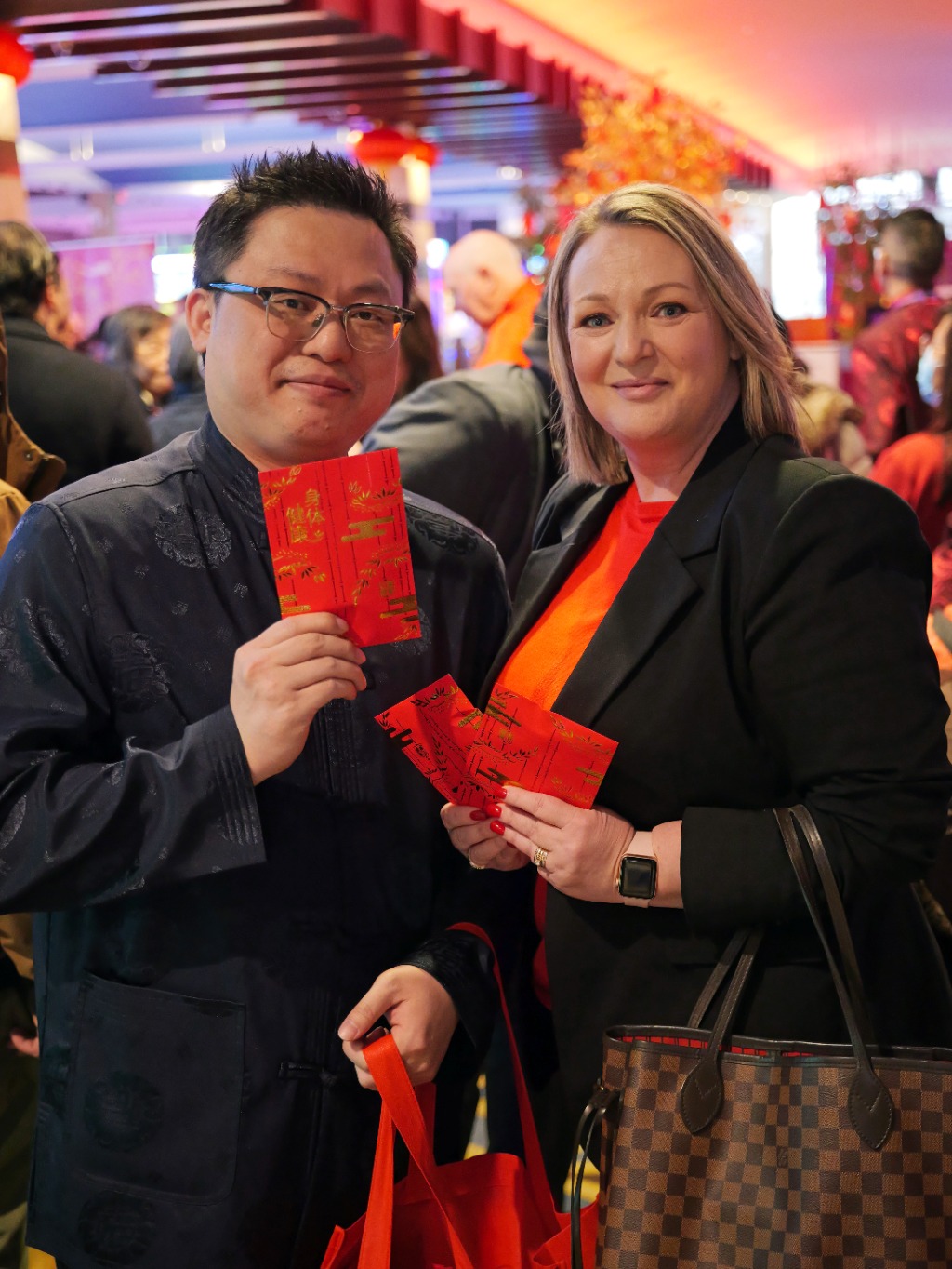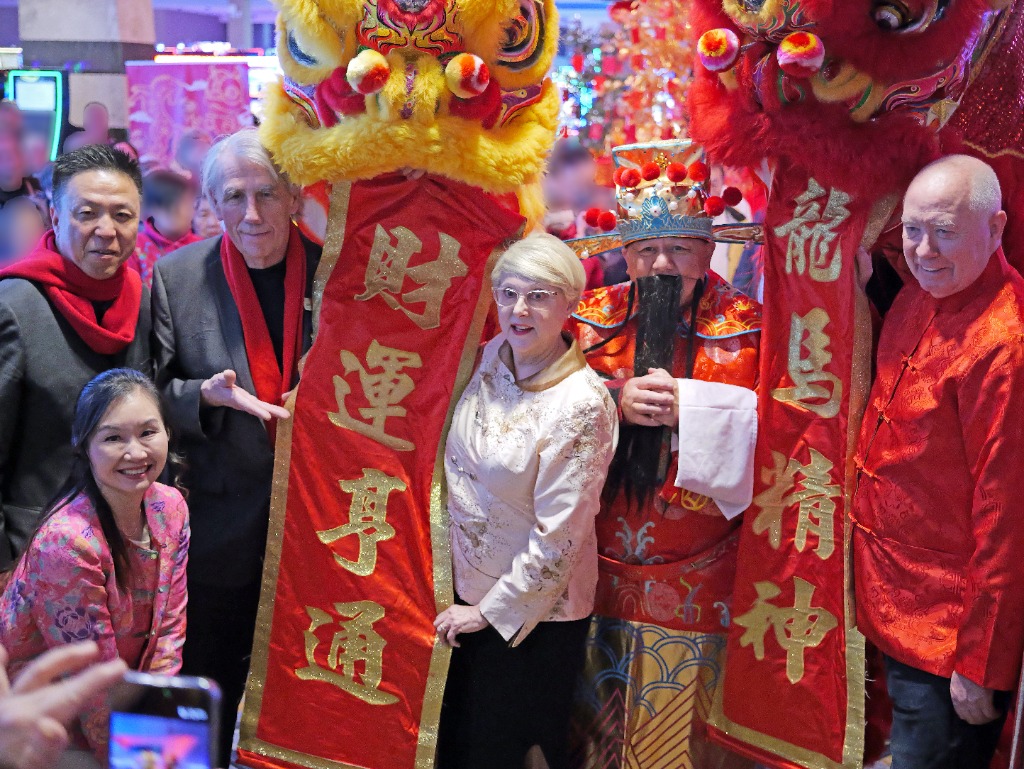 庆典当天,Gateway Casinos 卑诗西部运营总监 Tammy Diablo、金殿娱乐场总经理 Stan Ma,以及多位省市政府嘉宾出席活动,并与财神一同合影送上新春祝福。
