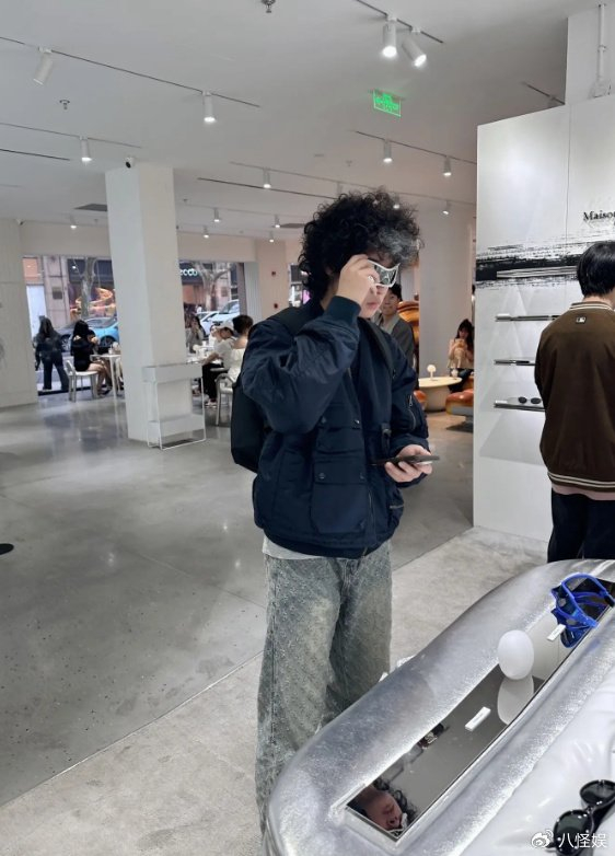和妈妈一起逛潮牌店的心心身穿藏蓝色外套搭配浅色牛仔裤,背着双肩包打扮的很时髦。从心心长相来看可以说是爸妈的结合体,五官像妈妈,但侧面又好像爸爸,长相还是很帅气的。不过,留着一头卷毛爆炸头的他被发型封印了颜值。