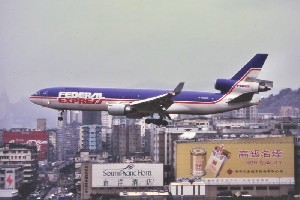 联邦快递MD11F型飞机(注册号N503FE,涂装为旧款)驶过控制塔