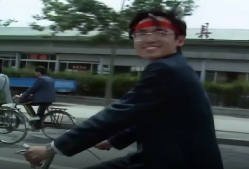 网上有人翻出1989年六四事件一段BBC采访一名年轻人骑着单车去往天安门广场的视频,发现惊人巧合。(图取自BBC News中文YT)