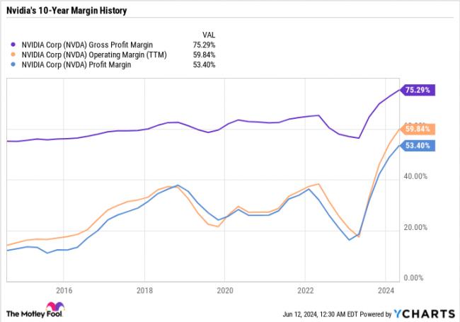 據FinanceCharts數據,英偉達最近12個月(截至2025年)毛利率約為69.8%。