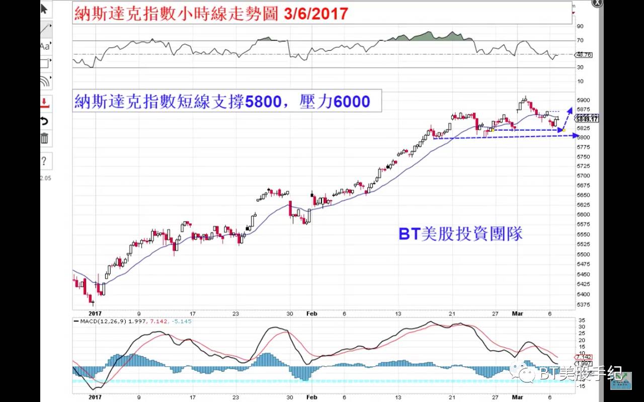 納斯達克指數目前進入一種回補缺口狀態,下方的缺口一個個補了,但是今天的跳空低開缺口還沒有回補。目前短線支撐在5800,壓力位置在6000。明天可能低開在今天最低點,然後向上去補今天的缺口。如果高開走低,跌破5800的話,那麼繼續補下方的缺口的可能性就增加了。