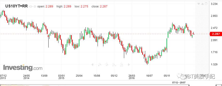 就利率本身的走勢來看,一周多前因為法國大選的避險因素美債價格大幅拉升,但是十年期債券收益率卻並沒有跌破自11月份以來的上升趨勢線,周五的GDP數據也沒有引起債券的大幅拉升,反而在周五上午大幅走低,顯示短期內債券收益率下跌空間有限,或者說債券上升空間有限,周三的美聯儲會議之後有可能會引發利率的上漲。