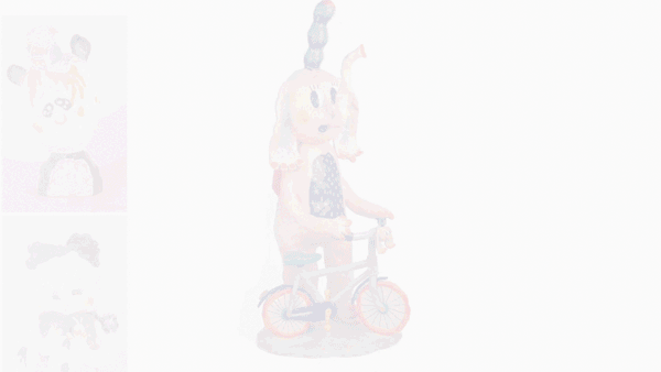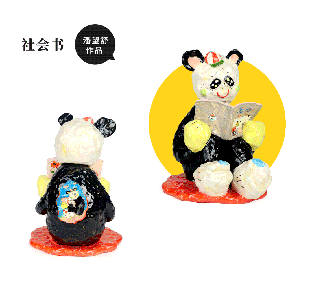 “当时在构思的时候,刚好看到了一个塑料袋,上面有一个熊猫的造型,特别的囧,觉得很合适,就做了一系列这个形象的雕塑,并取名为小潘。