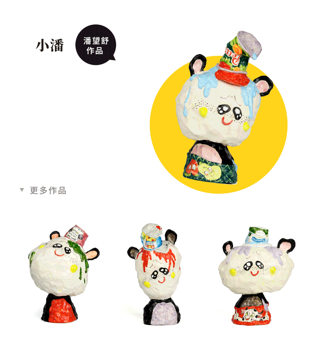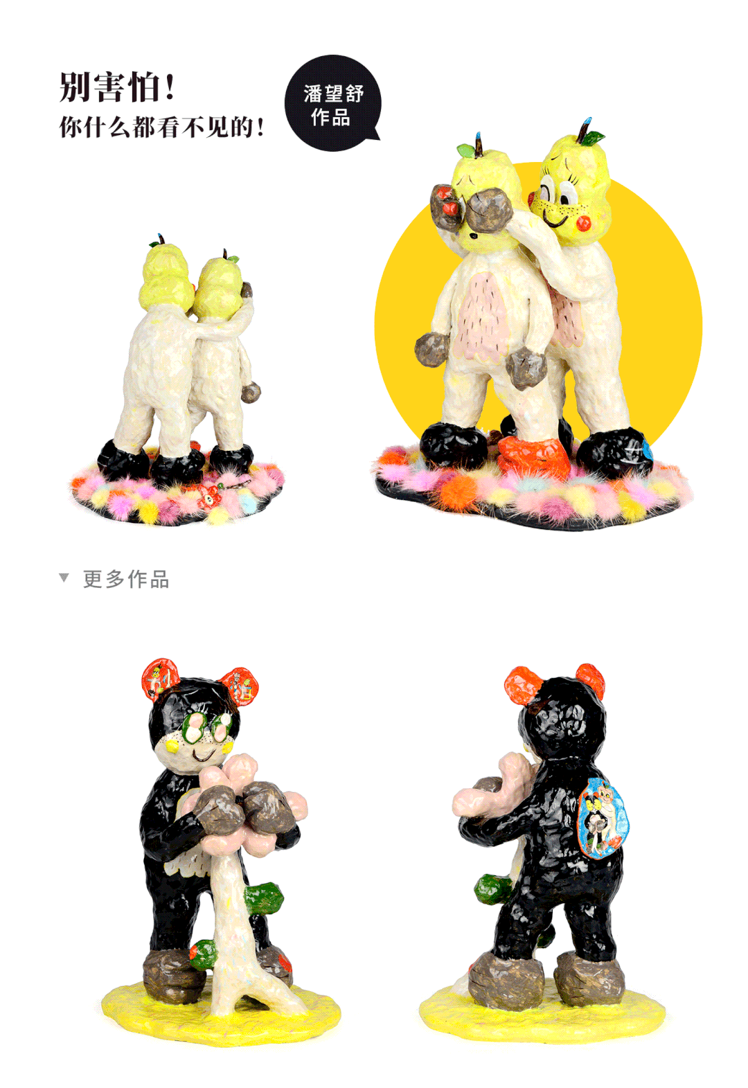 潘望舒的雕塑作品在海内外的社交媒体上极受年轻人的欢迎,尤其是00后。虽然目前为止,她的作品虽然都是群展,但可爱的造型经常会被观众一眼认出、订购。