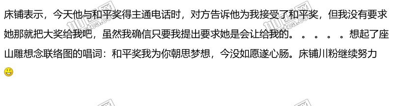 视频 1:40 川普说:the person who actually get the nobel prize called today, called me, and said that I'm accepting this in honor of you, because you really deserved it, that's a very nice thing to do