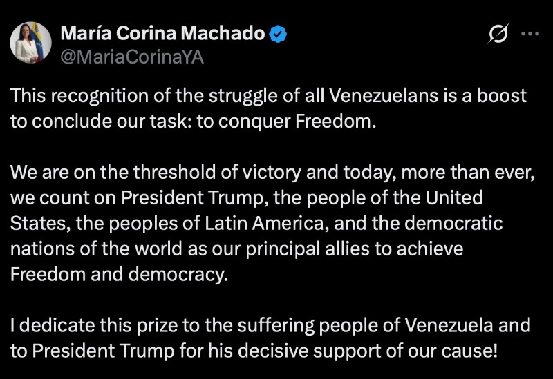 谷歌翻译属于机器翻译,懂英文的就要懂得全文的融会贯通,先考考你那个米国电台视频的标题“Trump says Nobel Peace Prize winner Machado accepted the award for him”是什么意思 ?