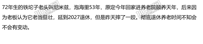 好像说不会再出任务了。这次栽飞机的南海之旅已经是老头最後一桩任务了。。。