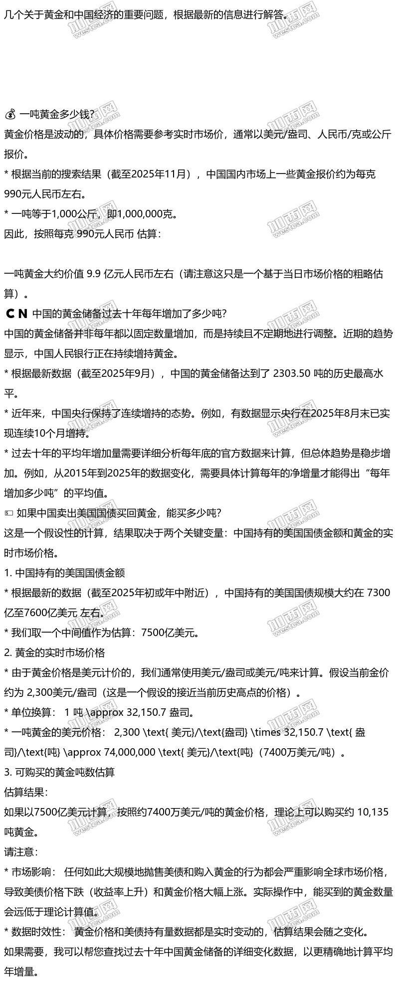 1) 一吨黄金多少钱?(以当前市场价换算)