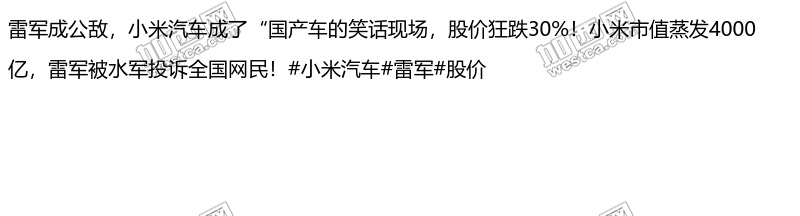 雷军成公敌,小米汽车成了“国产车的笑话现场,股价狂跌30%!小米市值蒸发4000亿,雷军被水军投诉全国网民!#小米汽车#