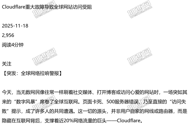"我慌了!" Cloudflare故障引发全球互联网混乱