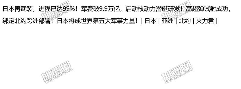 日本再武装,进程已达99%!军费破9.9万亿,启动核动力潜艇研发!高超弹试射成功,绑定北约跨洲部署!日本将成世界第五大军