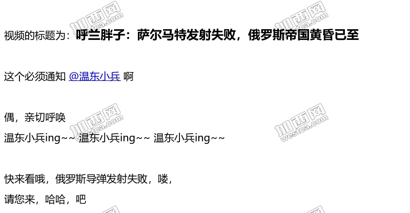 视频的标题为:呼兰胖子:萨尔马特发射失败,俄罗斯帝国黄昏已至