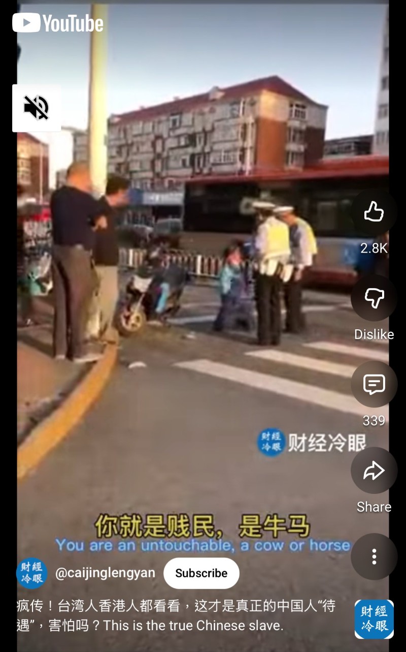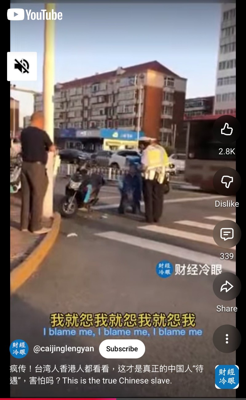 网络流传一短片,大陆人电单车骑手,被交通警截查,该中国人忽街头跪下不断自我掌掴、自我羞辱,就是不肯站起。