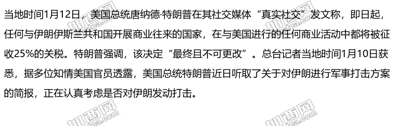 白宫:川普考虑发动空袭 阻止伊朗镇压示威者
