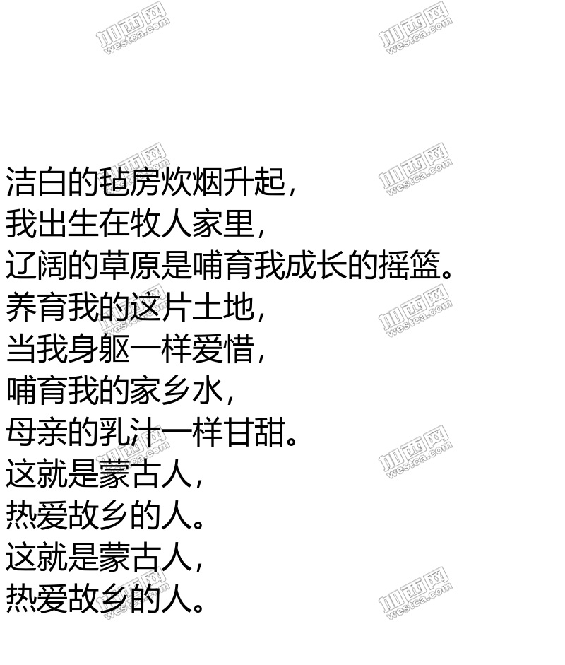 中华民族之蒙古族呼唤刘厅长:这就是蒙古人, 热爱故乡的人。 洁白的毡房炊烟升起, 我出生在牧人家里, 辽阔的草原是哺育我