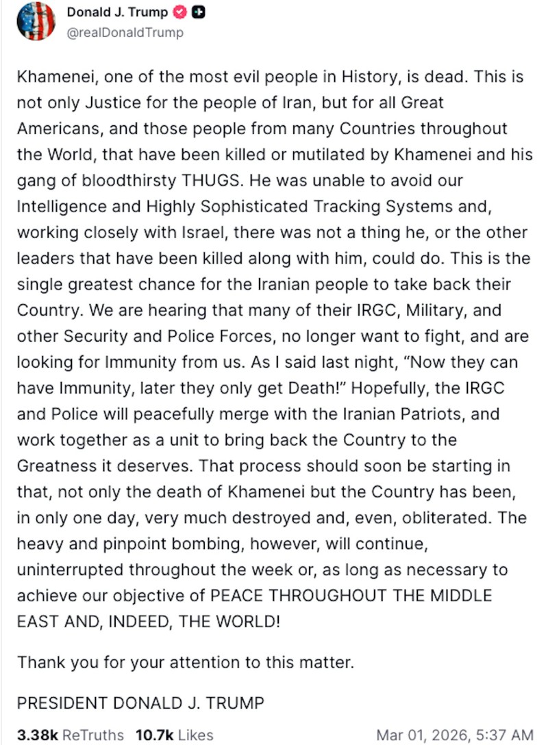 德黑兰遭"斩首式"重击!川普:确信哈梅内伊已死