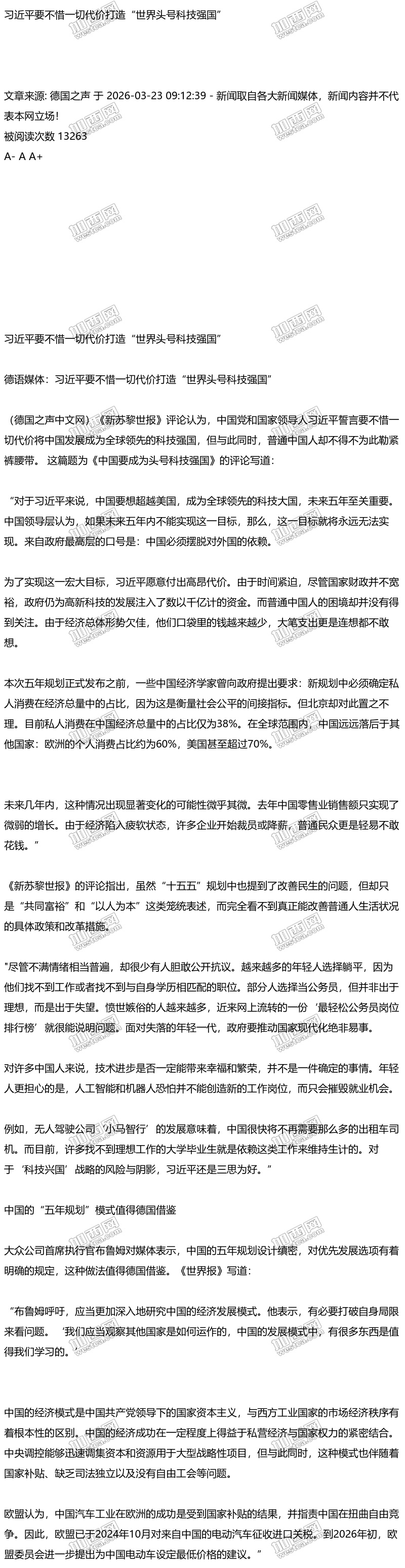 评论: 习近平要不惜一切代价打造“世界头号科技强国”