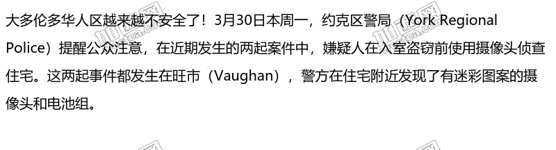 赶紧自查! 大多伦多民宅被暗装摄像头, 屋主遭监视! 华人区一周连爆7起抢劫!