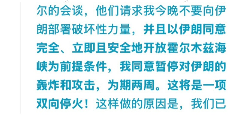 最后一小时 伊朗同意【完全】【立即】【安全】开放海峡。同时告诉伊朗人民说伊朗赢了,哈哈哈哈