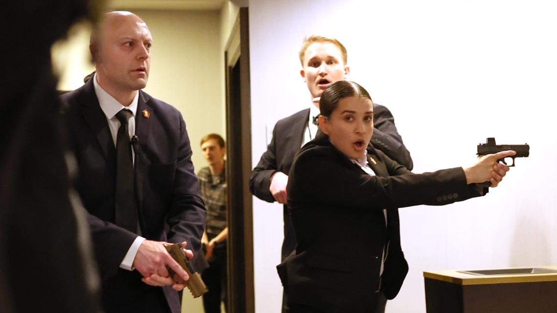 活动现场影片显示,当这个华府媒体组织的年度聚会正在用餐时,宴会厅内突然传出枪声,特勤局和其他执法人员迅速涌入宴会厅,数百名宾客纷纷躲到桌子底下,有人大喊:「先生,让开!」,其他人也纷纷大喊躲起来,随後川普在维安人员护送下紧急撤离。