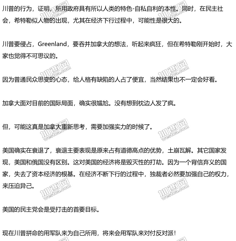 周公权 于 2026-1-07 14:22 写道: 美国现在已经没有资格去指责其它国家对邻国的侵略。因为美国就是霸凌邻国的土匪。北大西洋公约组织已经名存实亡了。欧州和美国的矛盾开始公开化。加拿大应该是欧州的一部分。美国现在加入了俄国行例。局势变化太快。 经济局势更是十万火急。看来,美国货币贬值的速度要加快了。毕竟债务已经到了无法再继续维持的地步了。战争需要金钱,美元印刷是唯一对付高美元债务的困境。 现在所有贵金属都发了疯一样涨,就是预示,这次美元的稀释是史无前例的! 回到加拿大,为了应对美元的贬值,加元只有对应而战,没有办法。 |