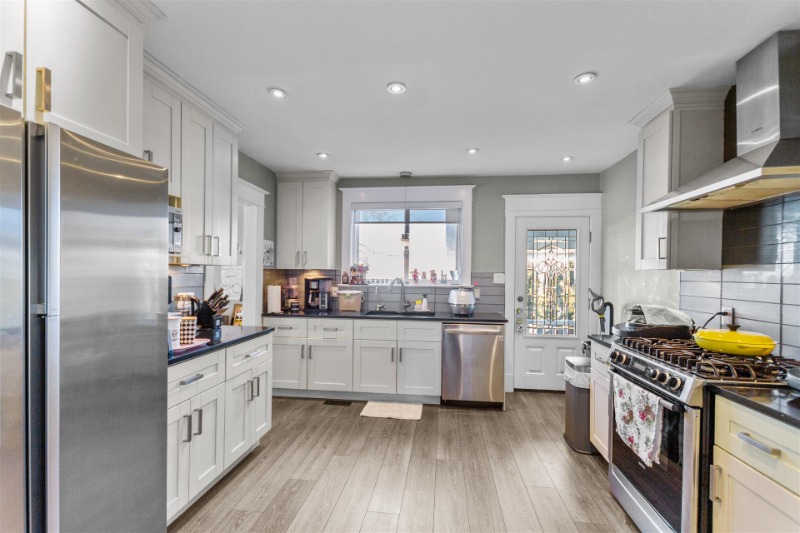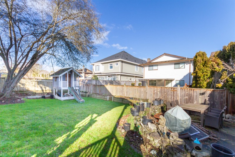 5房形格屋由原Steveston建造.房屋在2015-16年間耗資卅萬全屋現代装修(包括更新屋頂,地板,全新廚房,石英台板,電器,廚櫃,双層玻璃窗,房門,屋前大門,窗帘,屋內外新牆油,燈飾,包括水晶燈,屋前電動門閘等).下層有兩房套房連全衛廚房,独立出入口,門廊,大形儲物室.75'x150'大地,寧靜後花园及滑梯遊樂場,一個車庫及可停泊6車的户外停車間.步行達优質名小学及McMath中学.This very stylistic house of 5 beds was originally built by the founder of Steveston! The original house structure has undergone full modem renovation inside-out in 2015-16 (Everything brand new: including roof, floors, kitchen with quartz countertop, tiles, electrical appliances and cabinets, double-glass windows, doors, large front doors, blinds, all interior and exterior paints, lightings including chandeliers, electrical house gate-- totally around $300,000 spent). This property boasts a 2-bed suite w/sep. entrance in great move-in condition, a large porch, tons of storage spaces, a 75' x 150' lot, a tranquil and private backyard garden, one covered parking, 6-car open-area parking, and walking distance to a prestigious elementary school and McMath Sec. School.