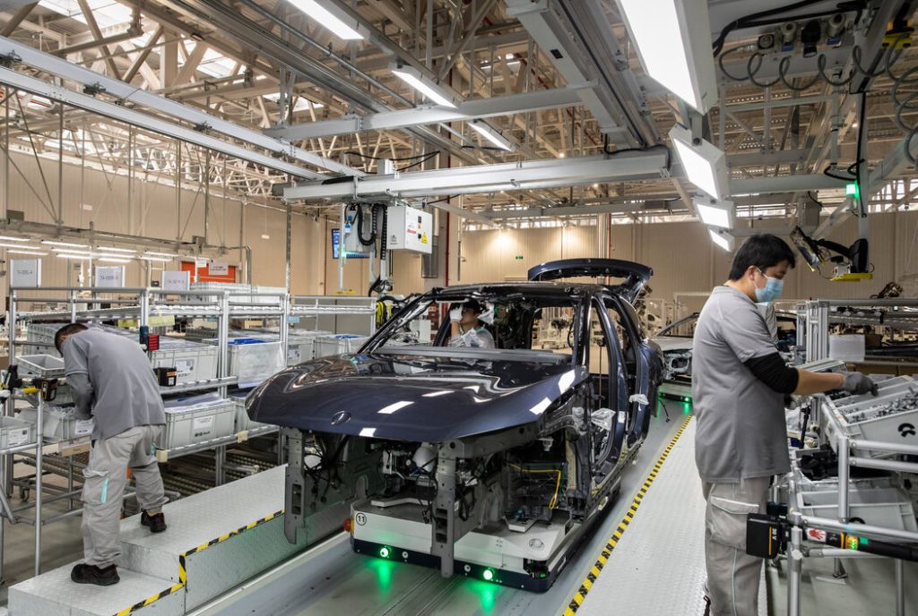 中國合肥的一家電動汽車組裝廠。拜登總統上周宣布,他將對進口的中國電動汽車征收100%的關稅。