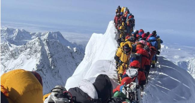 不过近年来,有许多登山客抨击尼泊尔政府为了营收,轻易开放经验不足的游客也可以参与攻顶,因此珠峰上的登山客越来越多,造成山道阻碍难行。 2019年5月初,就曾经发生过大量攻顶人潮涌入珠峰,导致海拔8000多米高的“死亡地带”大塞车,至少有10人因氧气耗尽死亡的悲剧。